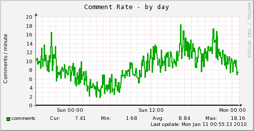 It turns out munin has an option called DERIVE, which turns your monotonically increasing value in to a per unit of time graph. So, I created a little REST API that returns the total number of pictures on the site. Then, all I had to do was scoop it up with a fairly simple munin plugin.